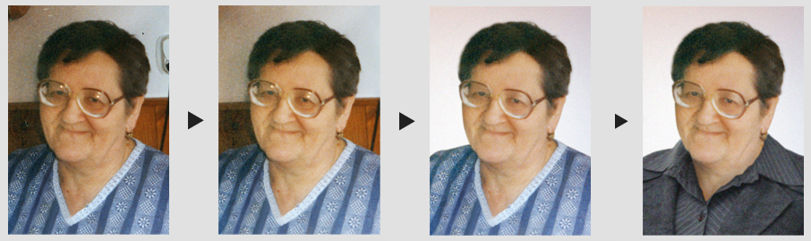 Základní úprava předlohy zahrnuje skenování (pokud jde o zaslanou papírovou fotografii), nebo pouze úpravu kontrastu a jasu, výřez do formátu zvolené předlohy a případnou vizualizaci (náhled na e-mail).